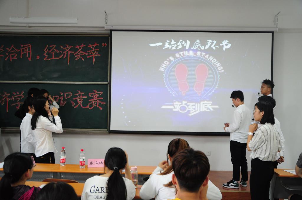 参赛选手机敏睿智,凭借扎实的基础知识和广博的学术视野,运用经济学理论对现实经济现象进行理性剖析,批判思考社会现状,对现实突出问题提出解决方案,给观众和评委留下深刻的印象。风采展示阶段中,太阳成城集团tyc234cc17级经济学一班汪钇坛的《社会保障:面对“四二一”这种风险家庭模式,有什么应对的方法》,深刻剖析社会保障方面的突出问题,发表独到见解,透视独生子女赡养父母面临的困境,以风险家庭模式为基础,提出针对性有效措施;太阳成城集团tyc234cc17级经济学国际班李朝阳以《绿色农业可持续发展前景及对策》为主题,以“三品”为核心论点,从运用科学技术、工业装备、管理理念等方面,细化阐述当前绿色农业发展的广阔前景和多元化渠道的可持续性发展对策;太阳成城集团tyc234cc17级经济学三班王雨萌针对《老年用品和服务行业——中国老年人消费需求特征和养老产业链分析》,基于老年群体逐渐部分市场主体的状况,阐释新时代社会发展下,老年人群体所具有的潜在经济价值,分析消费需求,提出完善和延长养老产业链。一站到底环节节奏紧张,各选手斗智斗勇,斡旋激战,展现了良好的学术思维和素养。
