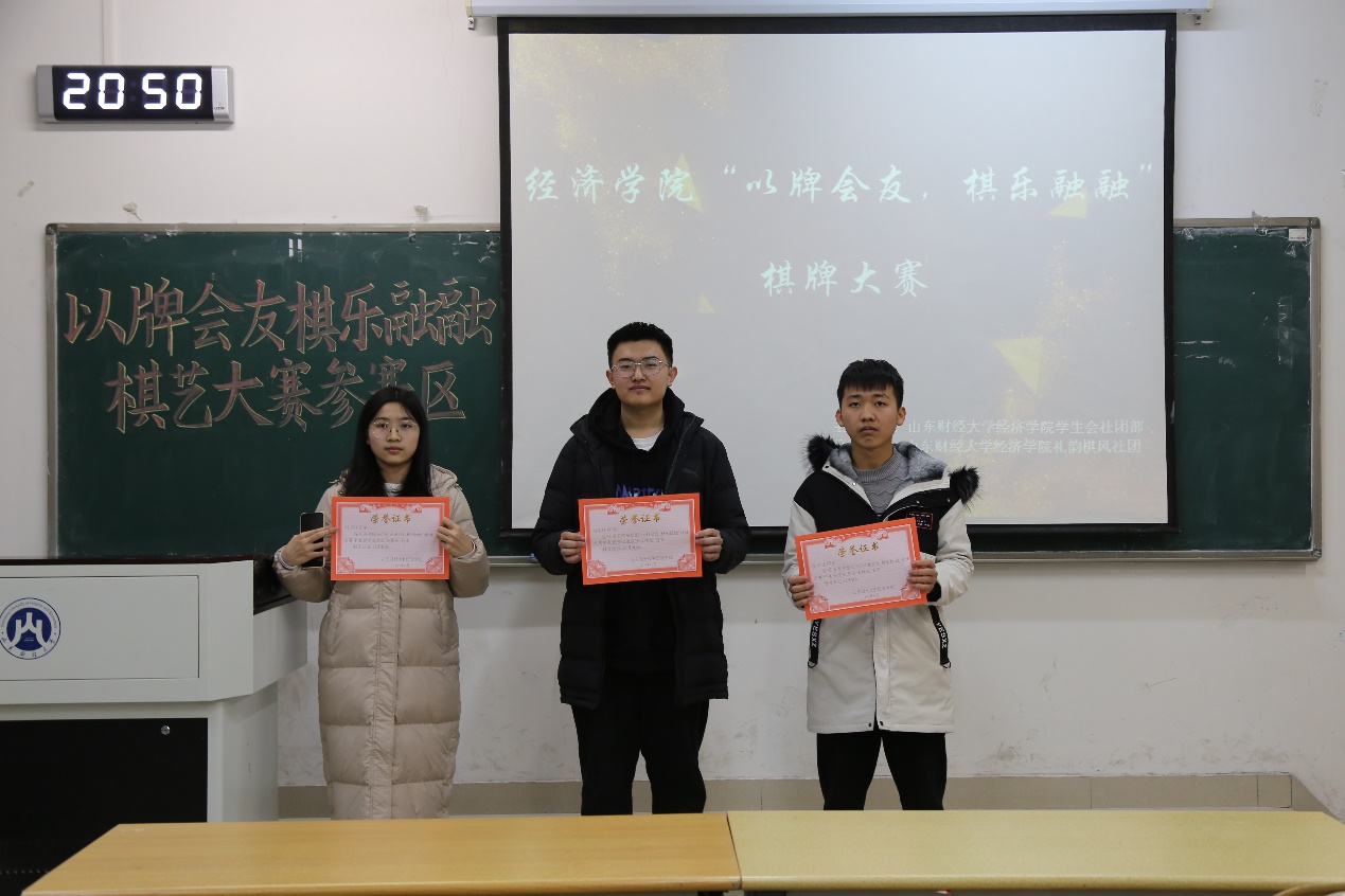 最终,经过三个小时初赛、复赛的多轮筛选,层层角逐,2020级经济学实验班符仕佳同学获得象棋组冠军;2019级会计学4班刘洪梅同学获得跳棋组冠军;2020级统计学(中加)2班刘奕轩同学获得五子棋组冠军。