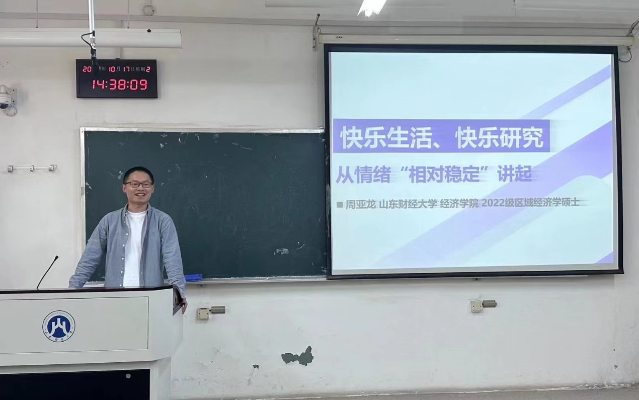 周亚龙在情绪管理方面分享了自己的感悟。关于保持情绪“相对稳定”他向同学们提出三点建议:一是希望同学们快速进入研究生状态,处理好工作与生活的关系,以及与室友、导师的关系;二是做到努力不抱怨,尽量少抱怨;三是学会适度思考,在减少内耗的同时注意自身情绪对他人的影响。