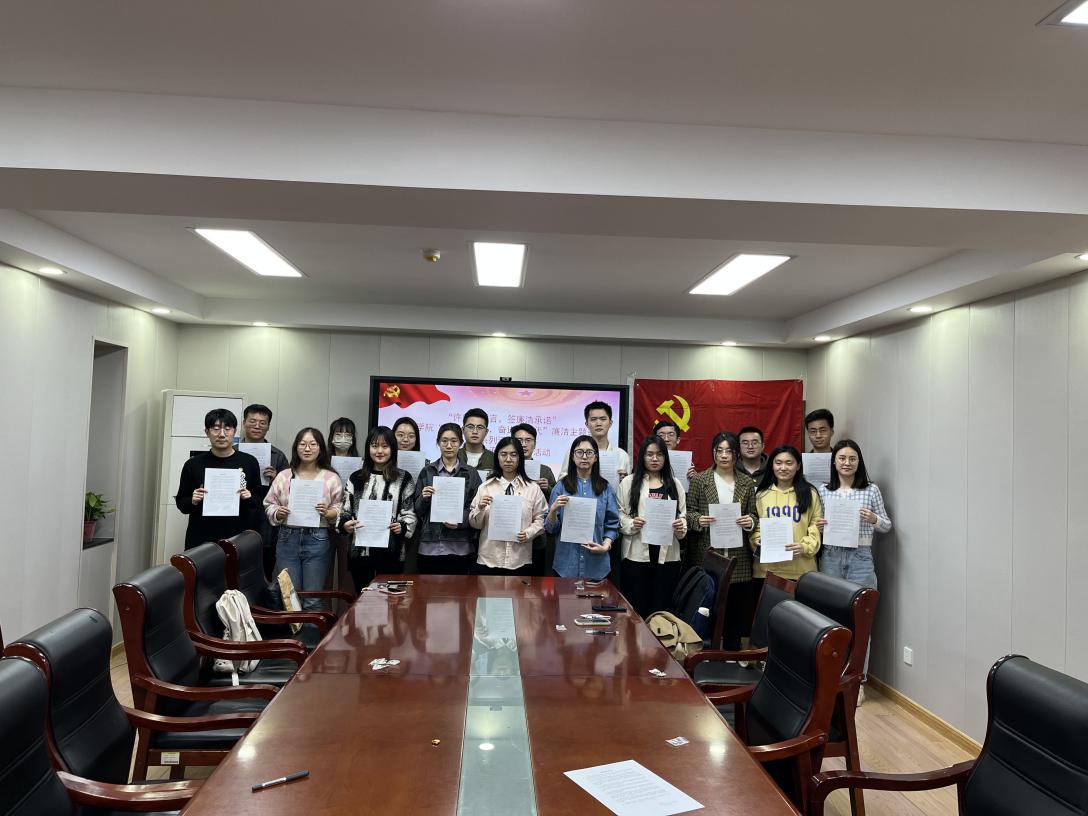 三、“许庄重誓言,签廉洁承诺”承诺书签订活动。为强化党员干部廉洁自律意识,优化工作学习作风,3月9日,在舜耕办公楼1208,研究生党员朗读并签订廉洁承诺书,廉洁承诺书是以《中国共产党廉洁自律准则》为指导,从政治坚定,维护大局,坚定信念忠于党、忠于祖国、忠于人民等方面引导党员自觉遵守规定。此活动旨在号召同学们主动学习并遵守承诺书各项内容,自觉接受监督。活动过程中,同学们纷纷签名践诺,表示将切实履行廉洁自律承诺,筑牢廉洁防线,守牢法纪底线,锤炼担当品格,坚决做到知敬畏、存戒惧、守底线,树廉洁榜样,做合格党员。
