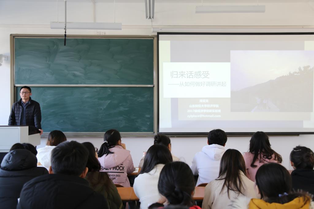 活动邀请了“忆烽火岁月,铭开拓初心”之重走长征路团队队长刘晗煜、校学生创新创业实践中心副主任兼竞赛部部长田雨、山东省第十六届挑战杯省一等奖团队“禀赋效应与地权征收心理溢价:机制分析、数据检验与治理路径”队员周亚龙、第五届建行杯山东省“互联网+”大学生创新创业大赛银奖团队“基于平阴玫瑰的特色食用菌产销一体化项目”队员李海天进行经验分享。