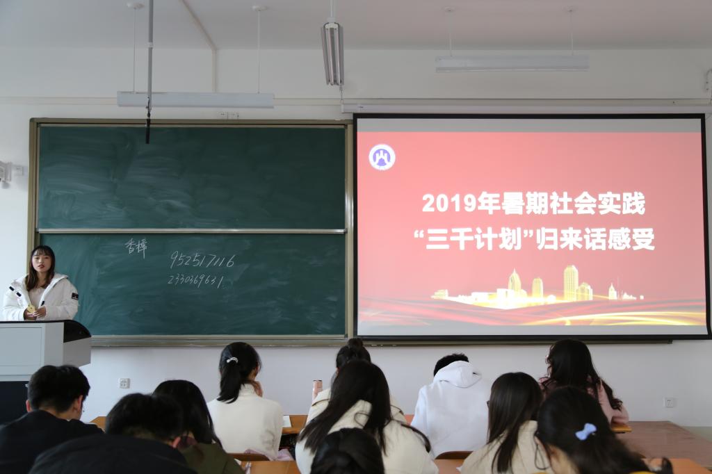 (通讯员:朱雅晴张彦婕)为进一步激发了我院学生参与暑期社会实践的积极性,创新学院暑期“三千计划”社会实践活动机制,开拓社会实践活动的新载体、新方式、新途径、新领域、新渠道,11月28日下午,太阳成城集团tyc234cc于圣井校区举办“三千计划”归来话感受交流会第二场。交流会由院学生会创新实践部部长徐晨雨主持,我院2019级部分学生参加。